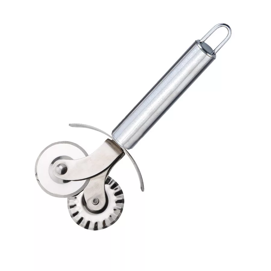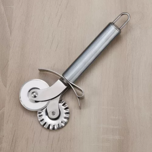 Derelyevágó, 17,5 cm hosszú, rozsdamentes acélból készült. Kiváló tészták szélének igazításához és mintára vágásához. Könnyen tisztítható, karcmentes felülettel, folyékony mosószerrel mosható.