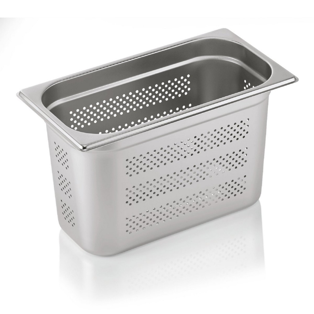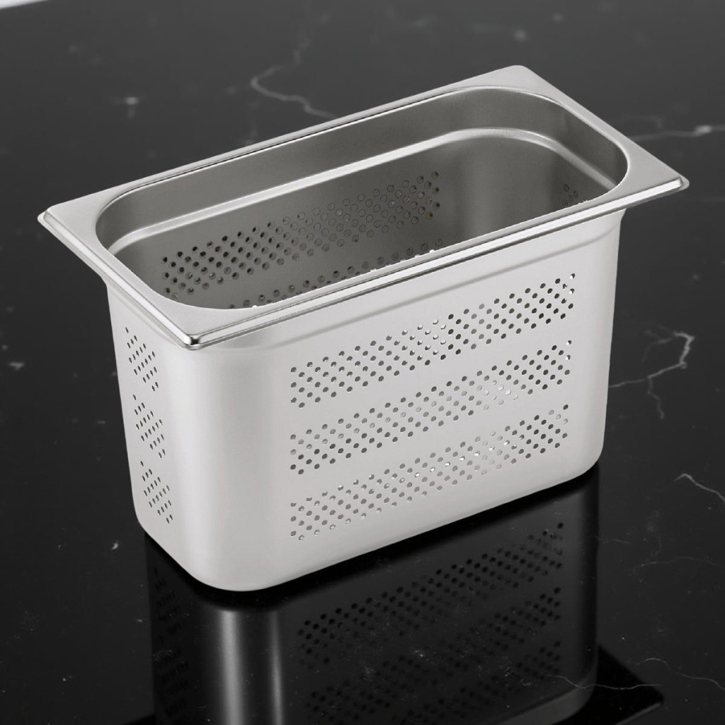 Ez a praktikus méretű GN edény ideális választás kisebb konyhák számára. A perforált kialakítás tökéletes zöldségek, köretek párolásához, míg a prémium minőségű rozsdamentes acél biztosítja a tartós használhatóságot.