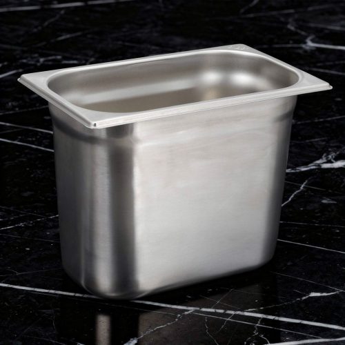 Professzionális GN 1/4 méretű rozsdamentes acél edény, 200 mm mélységgel és 5,5 literes űrtartalommal.