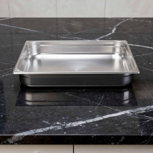 Professzionális GN 2/1 méretű rozsdamentes acél edény, 100 mm-es magassággal és 28,5 literes űrtartalommal.