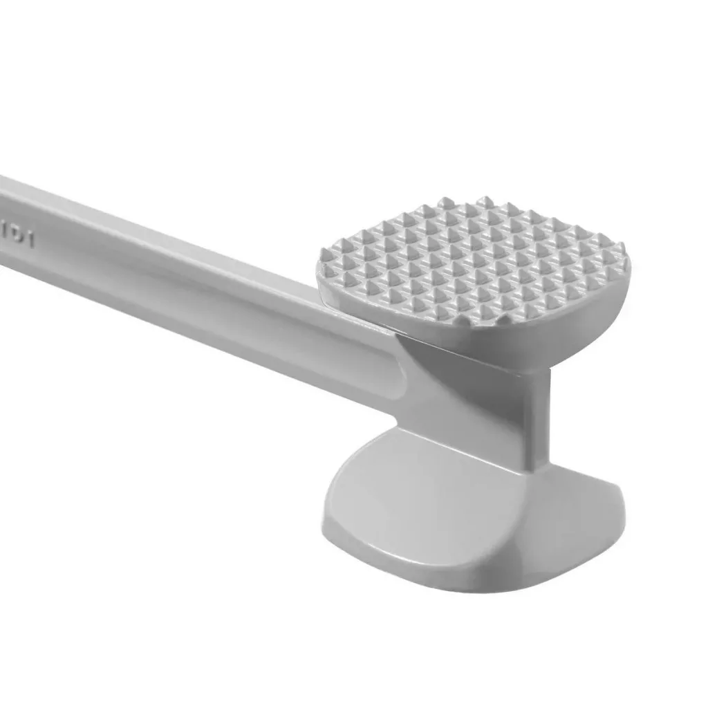 Alumínium ötvözetből készült. Kétoldalas: lapos oldal a kilapuláshoz, tüskés oldal az érzékenységhez. Hosszú fogantyú fűzőlyuklal.