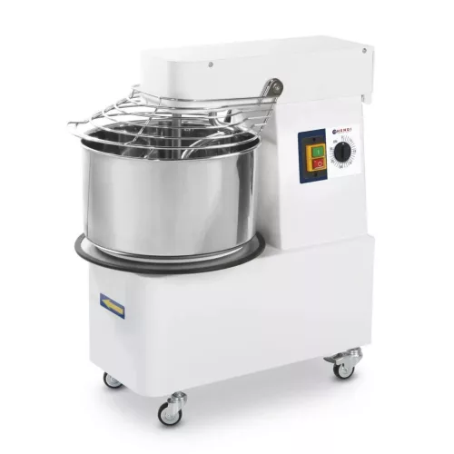 A rögzített fejjel és tállal rendelkező Hendi spirális keverő hatékonyan keveri össze a nehéz tésztát akár 88 kg/h sebességgel. A spirálos kialakítás homogén tésztát biztosít. Tökéletes például pizzériák vagy pékségek számára.