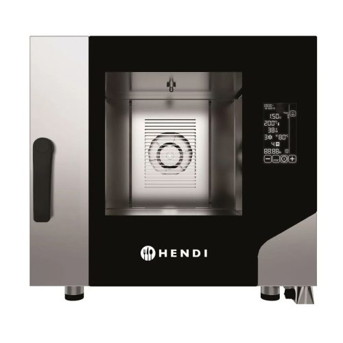 A HENDI hőlégkeveréses gőzsütő nagy teljesítményű, többfunkciós működést kínál: hőlégkeveréses, gőzös és kombinált sütési üzemmódokkal, amelyeket egy nagy, 7 hüvelykes érintőképernyőn keresztül lehet vezérelni. A hatékonyság és a könnyű használat jegyében tervezett készülék AirFlow+ és Humid+ rendszerekkel rendelkezik, az ajtóba integrált cseppgyűjtő tálcával, valamint energiatakarékos szigeteléssel ellátott, tartós rozsdamentes acél házzal.