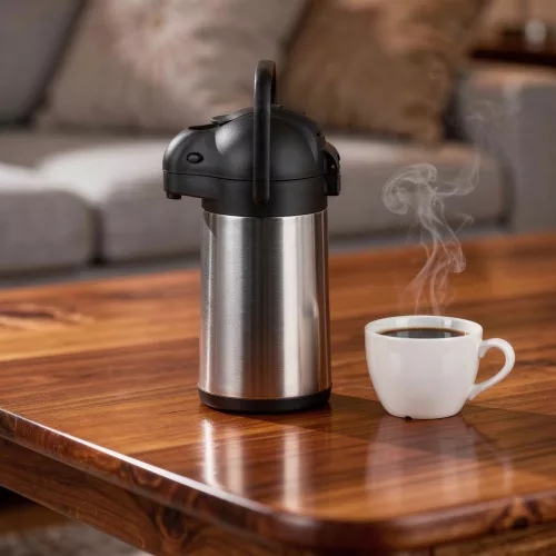 Nagy kapacitású, pumpás termosz professzionális felhasználásra, kiváló hőszigetelő képességgel.