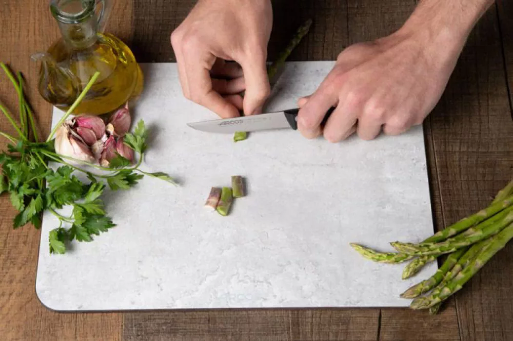 Precíziós Arcos Universal hámozókés 10 cm-es pengével, amely tökéletes választás zöldségek és gyümölcsök előkészítéséhez.