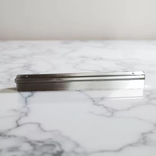 Professzionális, 46x8 cm-es rozsdamentes acél blokktartó sín vendéglátóipari használatra. A prémium minőségű rozsdamentes acél kivitel maximális higiéniát és hosszú élettartamot biztosít. A beépített golyós mechanizmus garantálja a rendelési blokkok biztonságos és praktikus rögzítését.