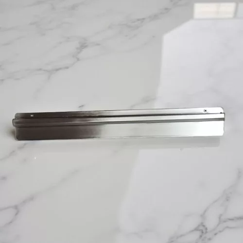 60x8 cm-es rozsdamentes acél blokktartó sín professzionális felhasználásra. A kiváló minőségű rozsdamentes acél konstrukció maximális higiéniát és tartósságot biztosít. A beépített golyós mechanizmus garantálja a rendelési blokkok biztonságos tárolását és könnyű kezelhetőségét.