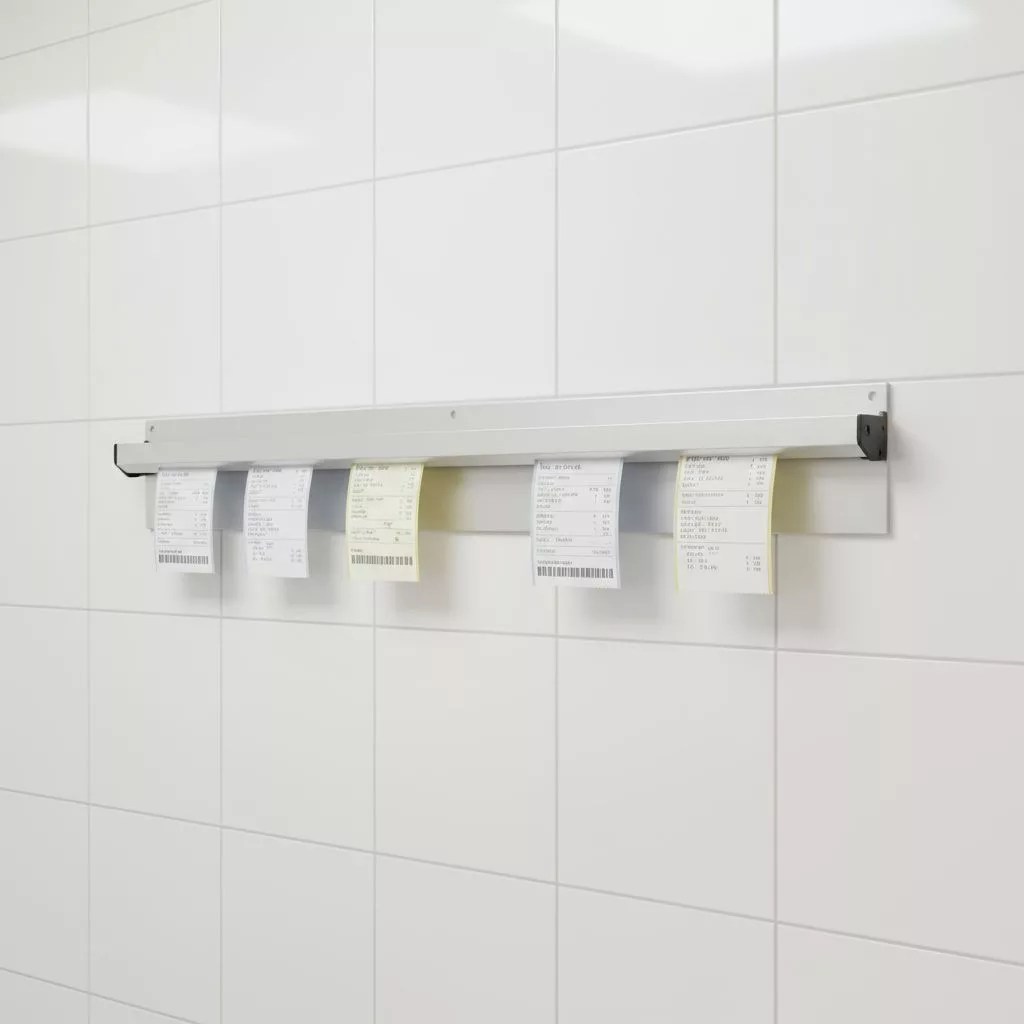60 cm hosszú alumínium blokktartó sín professzionális konyhákba. A közepes-nagy méretű kialakítás ideális megoldást nyújt forgalmas vendéglátóhelyeken. A beépített golyós mechanizmus biztosítja a rendelési blokkok stabil és megbízható rögzítését.