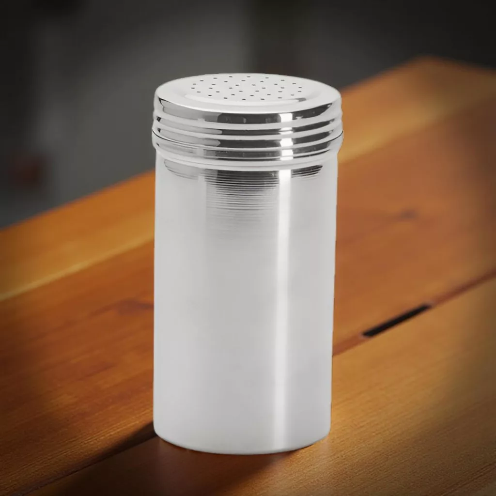 Prémium minőségű rozsdamentes acél fahéj- és kakaószóró 1,5 mm-es perforációval. A precízen kialakított lyukméret biztosítja a fűszerek tökéletes, egyenletes szórását.
