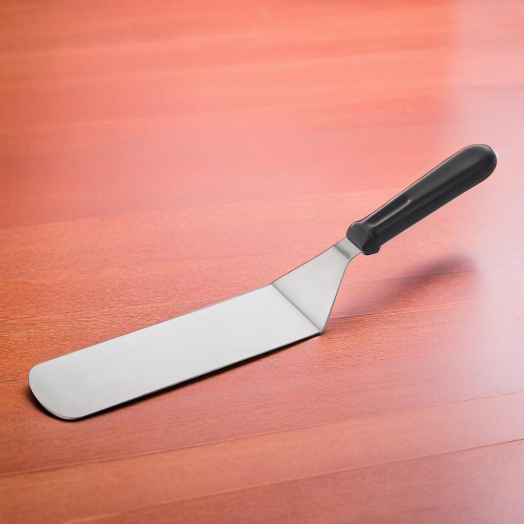 Az extra hosszú kialakítás különösen alkalmassá teszi nagyobb méretű serpenyőkhöz és wokokhoz. A műanyag nyél biztos fogást és higiénikus használatot biztosít.