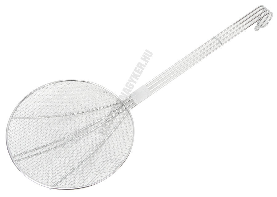 Fritou, fritőz kanál, sűrű rácsos, átm: 20 cm, teljes hossz: 53 cm, rozsdamentes