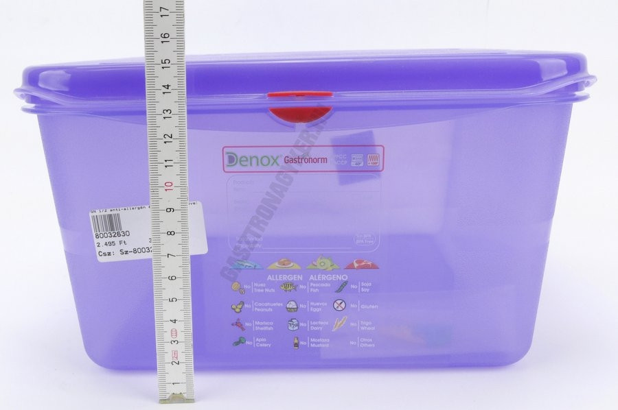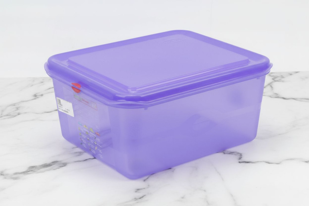 A nagy űrtartalom és a speciális lila színkódolás ideálissá teszi nagyobb mennyiségű allergén alapanyag biztonságos tárolására. Tökéletes választás olyan professzionális konyhák számára, ahol kiemelt figyelmet fordítanak az élelmiszerbiztonsági előírások betartására.
