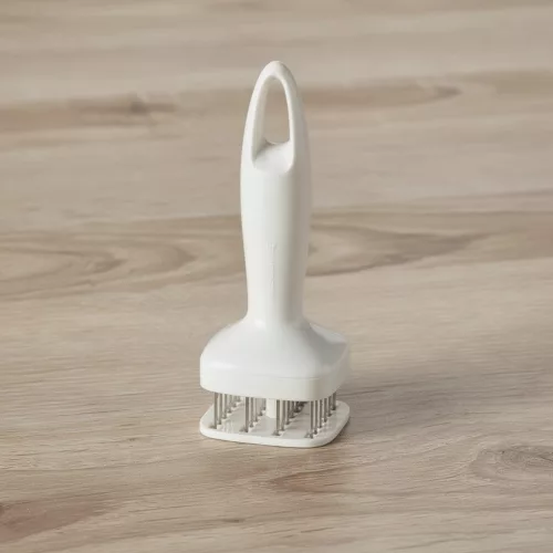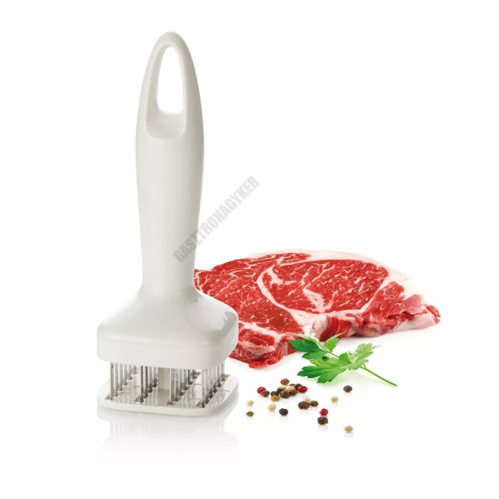 Kiválóan alkalmas szaftos steakek elkészítéséhez és minden fajta vörös hús puhítására. Helyezze a húspuhítót a nyers hússzeletre, nyomja meg a nyelénél fogva, majd ezt a lépést folytassa a steak egész felületén. Folyó víz alatt mossa, szükség esetén áztassa be. Nem alkalmas mosogatógépben való tisztításra!
