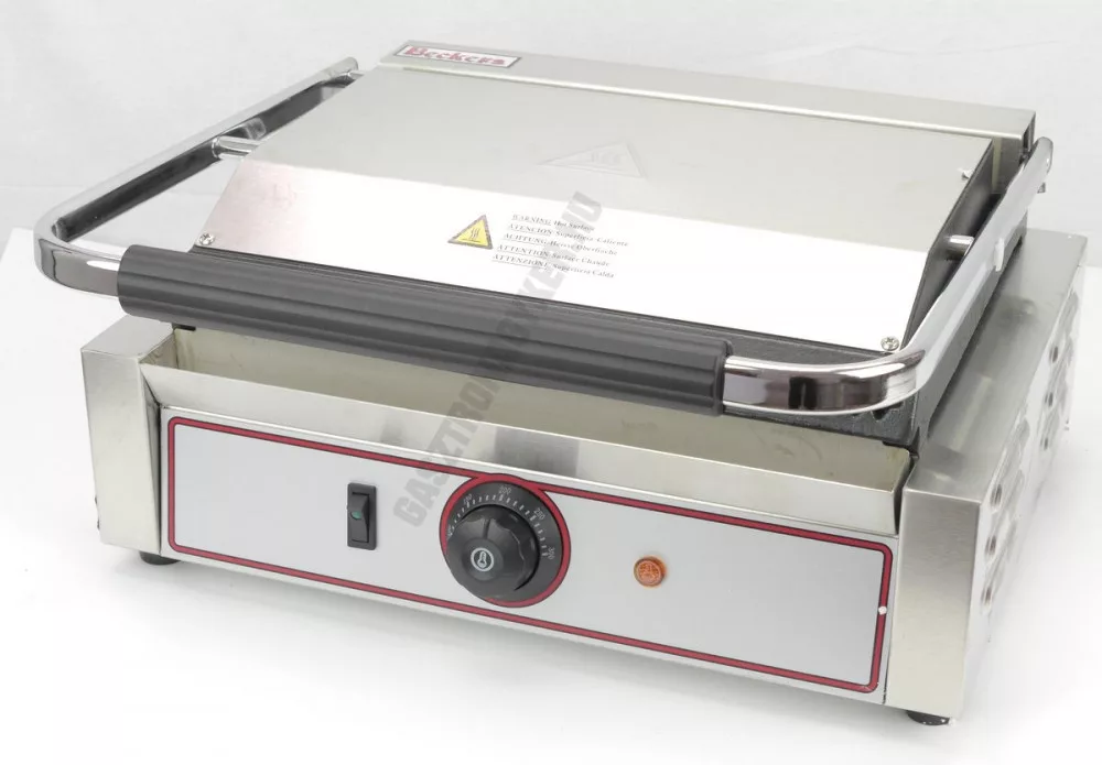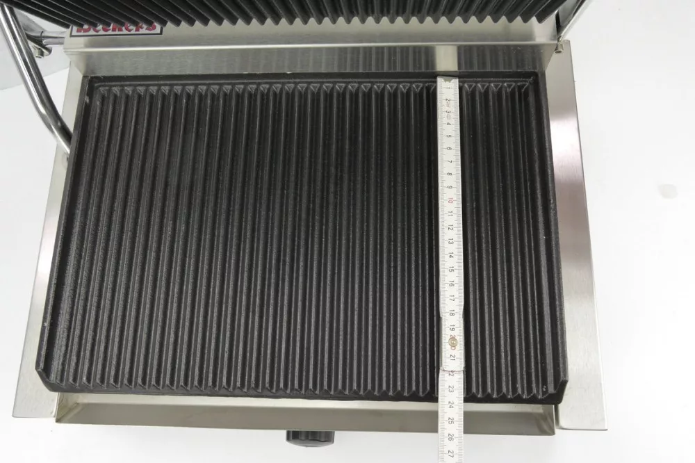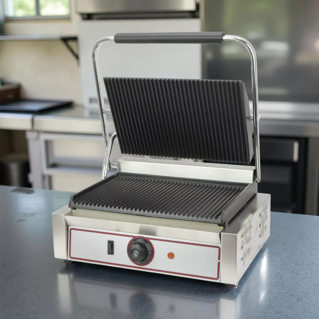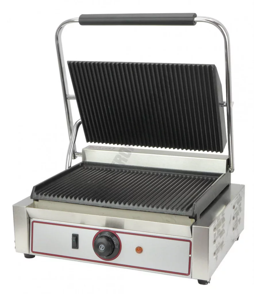 Kontaktgrill, bordás sütőfelület, bordás fedlap, 50-300°C-ig, sütőfelület: 335×230mm, 2,2 kW