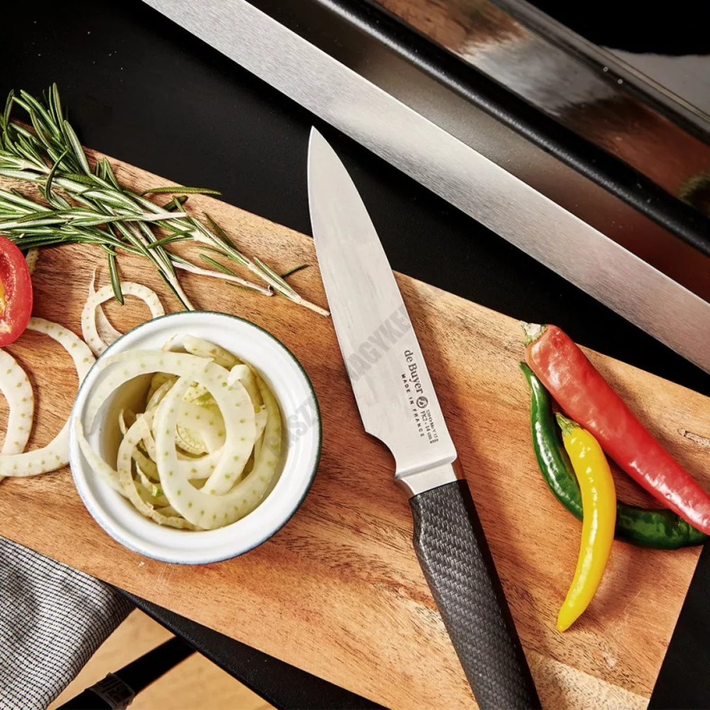 Az 1830-ban alapított francia de Buyer vállalat Fibre Karbon 2 termékcsaládjának 14 cm-es pengehosszúságú konyhakése ideális apró feladatok elvégzésére: zöldségek szeletekre vagy csíkokra vágása, sajtok vágása stb. A vékony penge megkönnyíti a vágást és további előnye, hogy könnyebb és kezelhetőbb, mint egy nagy szakácskés.