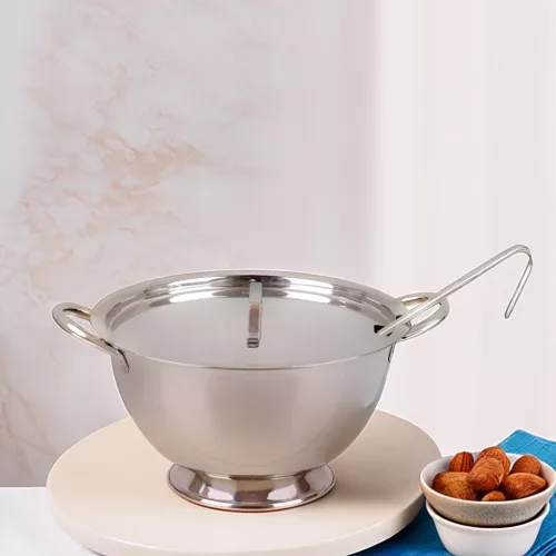 A rozsdamentes acél konstrukció hosszú élettartamot és könnyű tisztíthatóságot biztosít. A fedő segít az ételek melegen tartásában és a higiénikus tálalásban. A mellékelt tálaló kanál praktikus kiegészítő a professzionális szervírozáshoz.