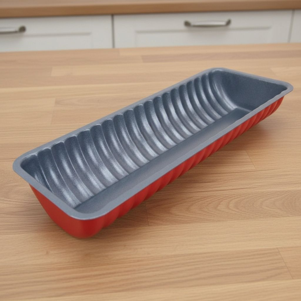 Professzionális, thermoplate bevonatú széles őzgerinc sütőforma 31,5x12,9x5,8 cm méretben. A nagyobb méret és a speciális bevonat kombinációja tökéletes választássá teszi nagyobb mennyiségű sütemények készítéséhez.