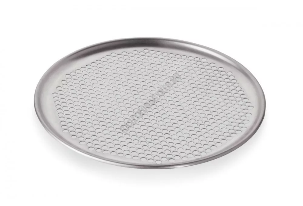 30 cm-es perforált alumínium pizzaforma, professzionális használatra.