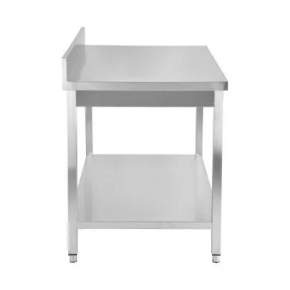 Rm. munkaasztal alsó polccal, hátsó felhajtással (100 mm), 1600×600×850 mm, lapra szerelt