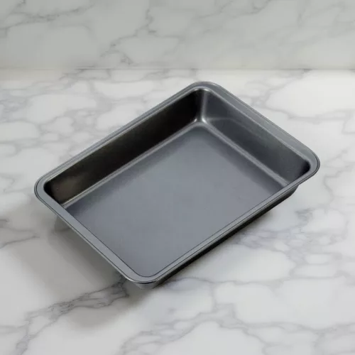 A tepsi ideális nagyobb mennyiségű sütemény, húsétel készítéséhez. A tapadásmentes felület megkönnyíti az ételek kiszedését és a tisztítást. Tartós kivitelének köszönhetően hosszú évekig megőrzi minőségét.