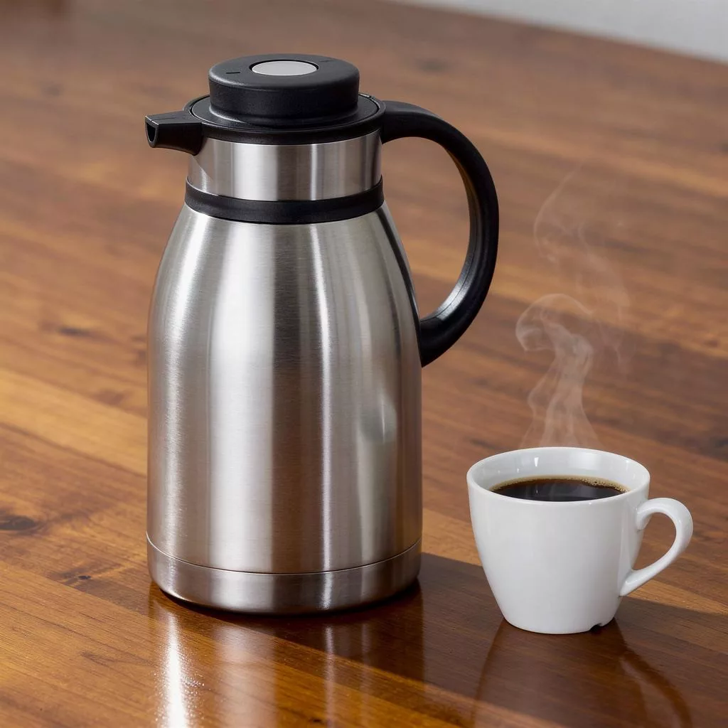 Innovatív, nyomógombos 2 literes rozsdamentes acél termosz.